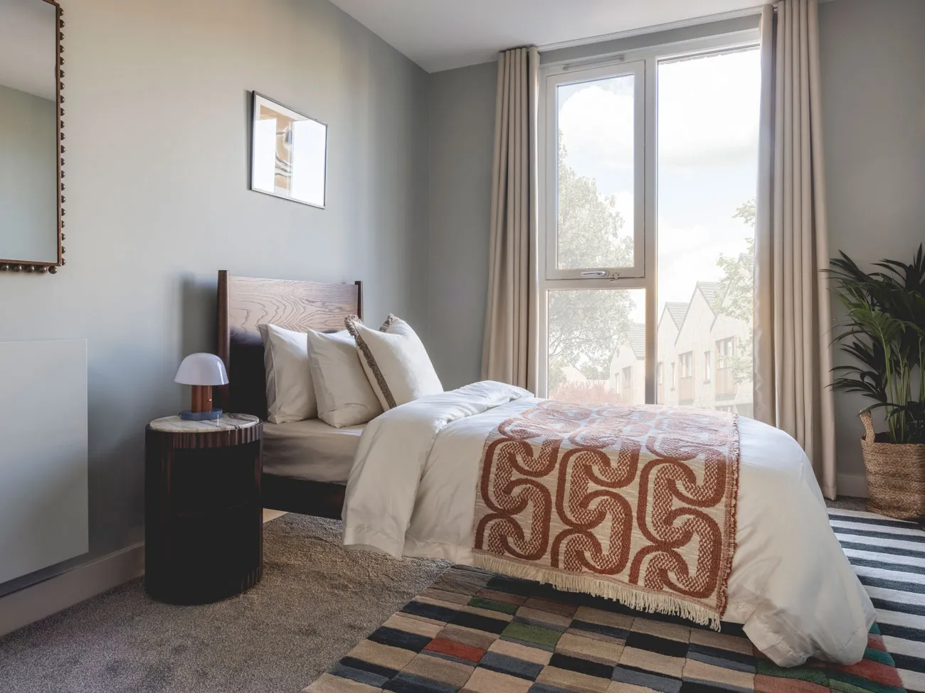 Your spacious 2 bedroom furnished apartment with 2 comfortable bedrooms that each feature a double bed with underbed storage, a full size wardrobe and an en-suite bathroom. Your living space includes a fully-equipped modern kitchen with an oven, 4-ring hob and washer-dryer.